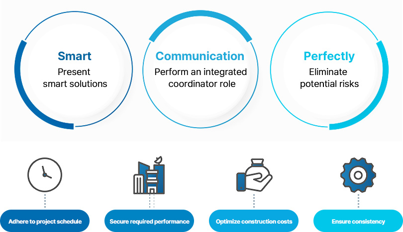 Construction Managers (CM) can efficiently manage work performed throughout all project phases from planning to maintenance by linking with BIM design models and through online collaboration with stakeholders (owners, contractors, designers, supervisors, partners, etc.)