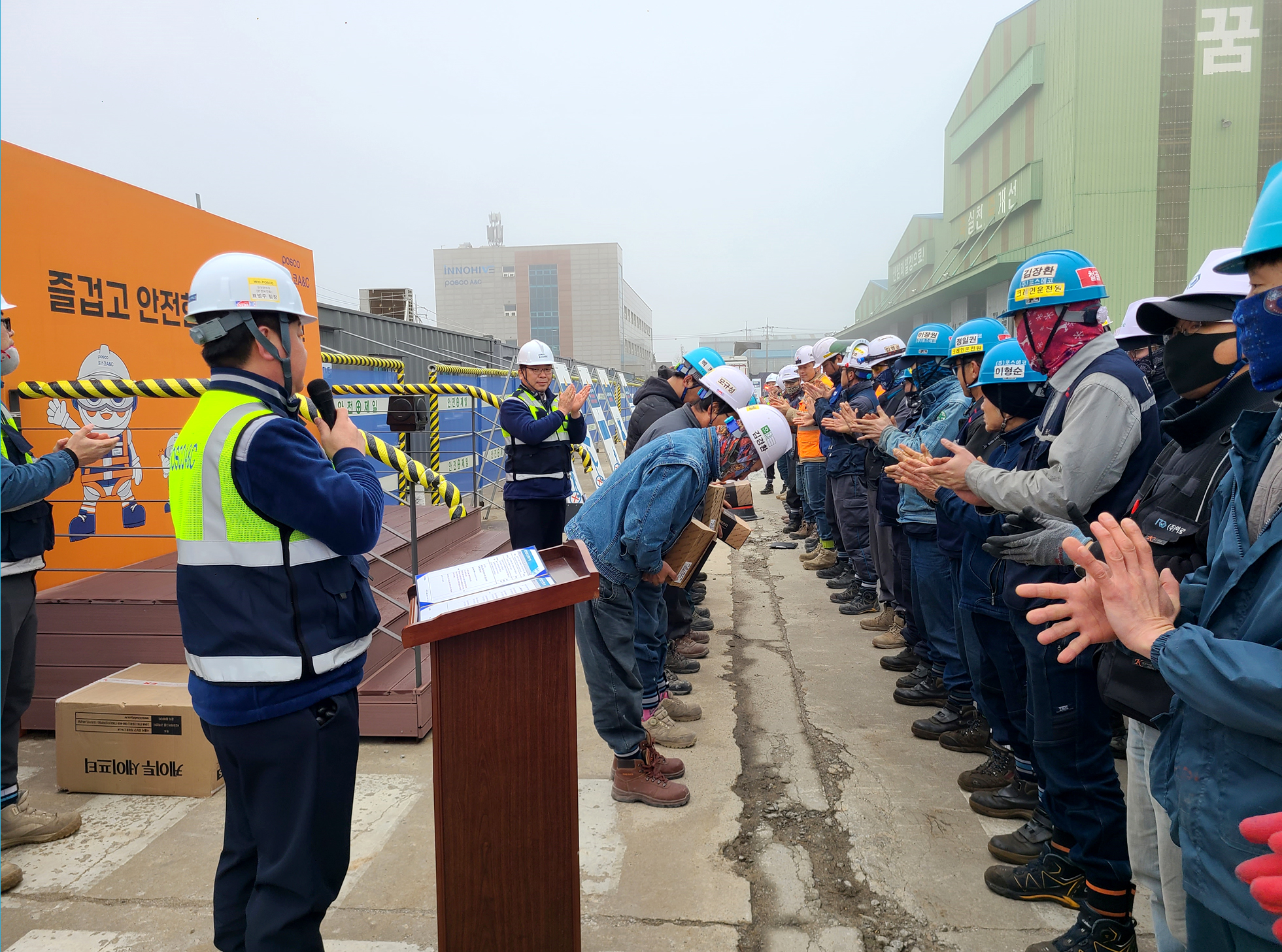 - 5. 시공현장을 포함한 전 사원 및 모든 협력사에 대한 안전보건 교육 실시 및 지역사회 참여와 협력을 통하여 지역사회 발전에 기여한다.