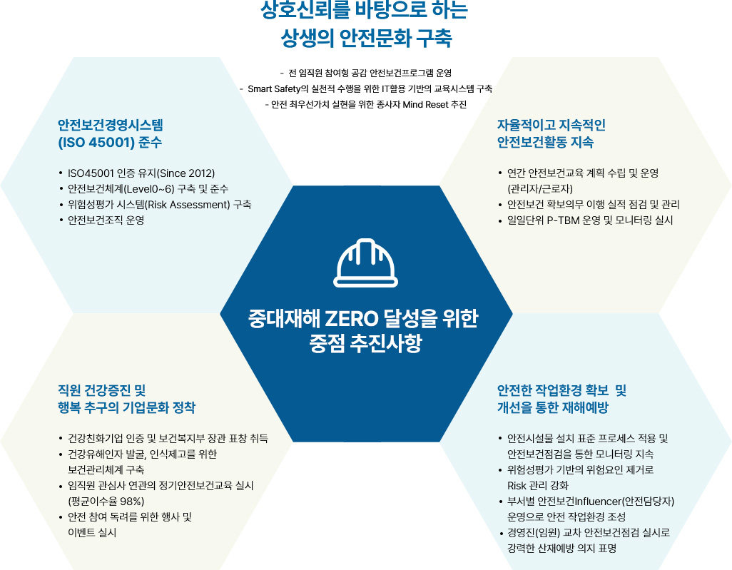 Global 안전문화 구현을 위한 인간존중의 사랑 실천으로 무재해를 추구한다.